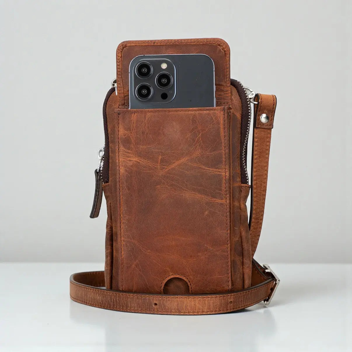 Lozan Strap Genuine Leather Crossbody Phone Wallet